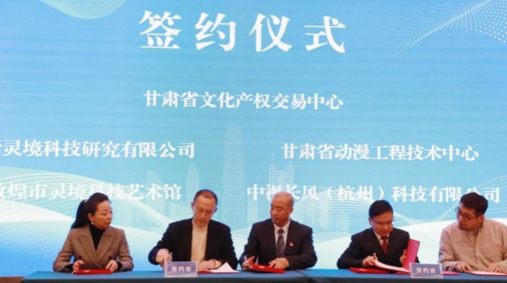 當(dāng)天,甘肅文交中心與新靈境科技研究有限公司、中視長(zhǎng)風(fēng)(杭州)科技有限公司、甘肅省知識(shí)產(chǎn)權(quán)保護(hù)中心、甘肅云數(shù)字媒體版權(quán)保護(hù)中心等省內(nèi)外八家單位簽署合作協(xié)議,攜手發(fā)展,合力推動(dòng)全省數(shù)字賦能文化產(chǎn)業(yè)繁榮發(fā)展。