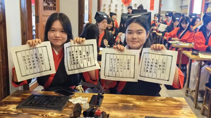 在河口古鎮(zhèn)的國學(xué)活字印刷研學(xué)館,港澳青少年們親自動手體驗了古代的活字印刷術(shù)。他們小心翼翼地擺放著字模,用墨汁輕輕刷過,再將宣紙覆蓋其上,輕輕一壓,一幅幅唐詩便躍然紙上。他們齊聲用粵語朗誦了“憫農(nóng)”“春曉”“相思”等經(jīng)典唐詩,不僅領(lǐng)略了民間藝術(shù)的獨(dú)特魅力,更在實(shí)踐中感受到了中華文化的博大精深。