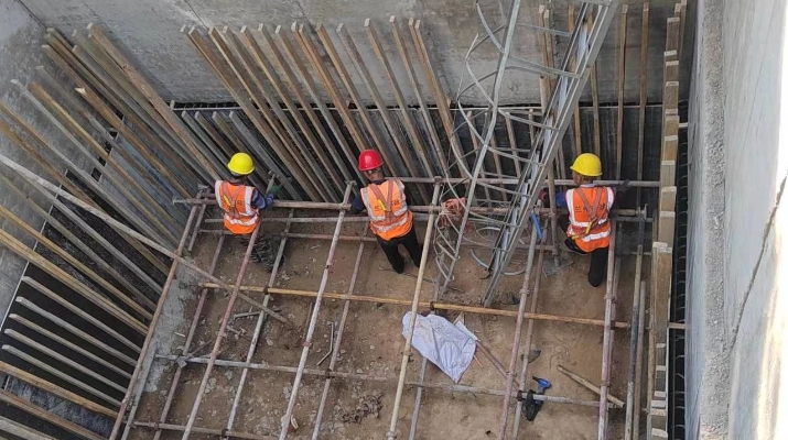 五泉下廣場提升改造項目部,根據(jù)施工現(xiàn)場情況,增加了3臺挖掘機、2臺鉆機、60名勞務(wù)人員,采取見縫插針、穿插作業(yè)的工作模式,晝夜奮戰(zhàn)在施工現(xiàn)場。截至目前完成了基坑支護工程、抗浮錨桿610根、土方開挖外運170790m3、基坑清底5500㎡、第四層換撐梁315m、集水盲溝320m、筏板墊層3830㎡、筏板防水3425㎡、1#塔吊安裝及1區(qū)筏板澆筑施工。