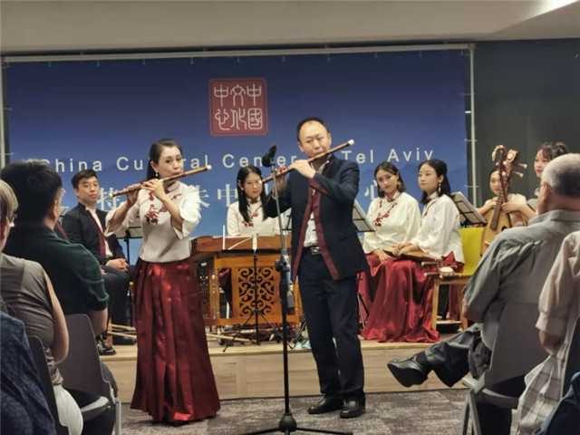 遙望明月共此時,歡度佳節(jié)同相知。中秋節(jié)歷史悠久,是中國的主要傳統(tǒng)節(jié)日之一。中秋佳節(jié)之際,甘肅藝術(shù)團在以色列舉辦以“天涯共此時”為主題的民樂演出活動,向當?shù)孛癖娝腿チ嗣烂畹囊魳肥⒀纾故玖酥袊鴤鹘y(tǒng)文化的精粹,表達了中國人民對親情、友情、鄉(xiāng)情的深刻理解與美好祝福。當?shù)刂髁髅襟w及新華社、中國國際廣播電臺對此次演出活動進行了采訪與報道。(文/圖 甘肅省文化和旅游廳 彭金澤)