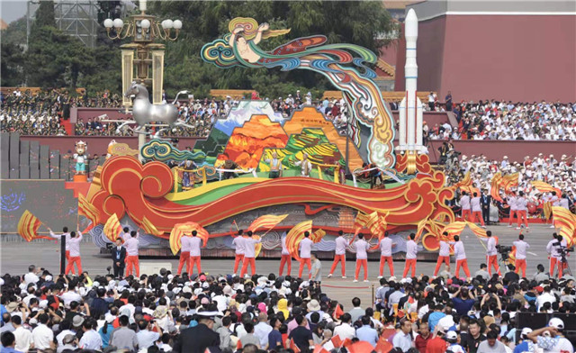 10月1日上午,慶祝中華人民共和國成立70周年大會在北京天安門廣場隆重舉行。生態(tài)祁連、奔馬乘風(fēng)、今古飛天……一個(gè)個(gè)特色鮮明的甘肅符號組成的“如意甘肅”大型彩車,藝術(shù)的再現(xiàn)了甘肅絲路文化、敦煌文化、航天文化以及生態(tài)建設(shè)和民族和諧,凝結(jié)著2600萬隴原兒女深深祝福,向祖國展示了甘肅經(jīng)濟(jì)社會發(fā)展取得的巨大成就,表達(dá)了廣大干部群眾認(rèn)真貫徹落實(shí)習(xí)近平新時(shí)代中國特色社會主義思想,加快建設(shè)幸福美好新甘肅、開創(chuàng)富民興隴新局面的堅(jiān)定意志和必勝決心!