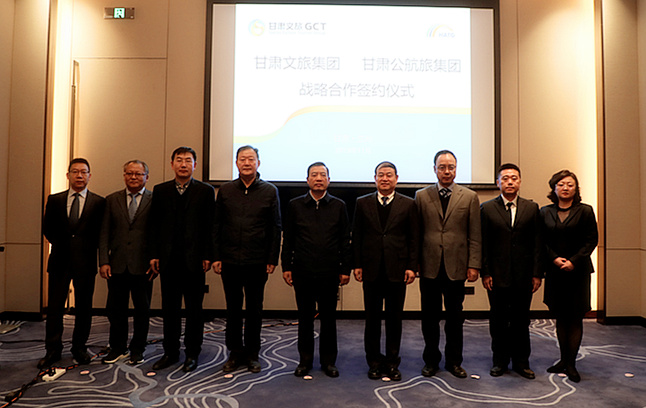 石培文董事長代表集團(tuán)公司在簽約儀式上致辭,他說,甘肅公航旅集團(tuán)2011年1月組建以來,以公路促民航、交通帶旅游,高站位、大格局、快節(jié)奏發(fā)展壯大,已成為甘肅高等級公路建設(shè)、通用航空發(fā)展、文旅產(chǎn)業(yè)開發(fā)、投融資平臺建設(shè)等領(lǐng)域的領(lǐng)頭雁、排頭兵,對推動甘肅經(jīng)濟(jì)社會發(fā)展,作出了巨大貢獻(xiàn),也為省屬企業(yè)發(fā)展作出了示范,樹立了標(biāo)桿,是甘肅文旅集團(tuán)學(xué)習(xí)的榜樣和追求的目標(biāo)。與甘肅公航旅集團(tuán)簽約,是甘肅文旅集團(tuán)與省屬企業(yè)簽署的第一份戰(zhàn)略合作協(xié)議,對于文旅集團(tuán)來講,是與巨人握手,向高人借力,意義十分重大。