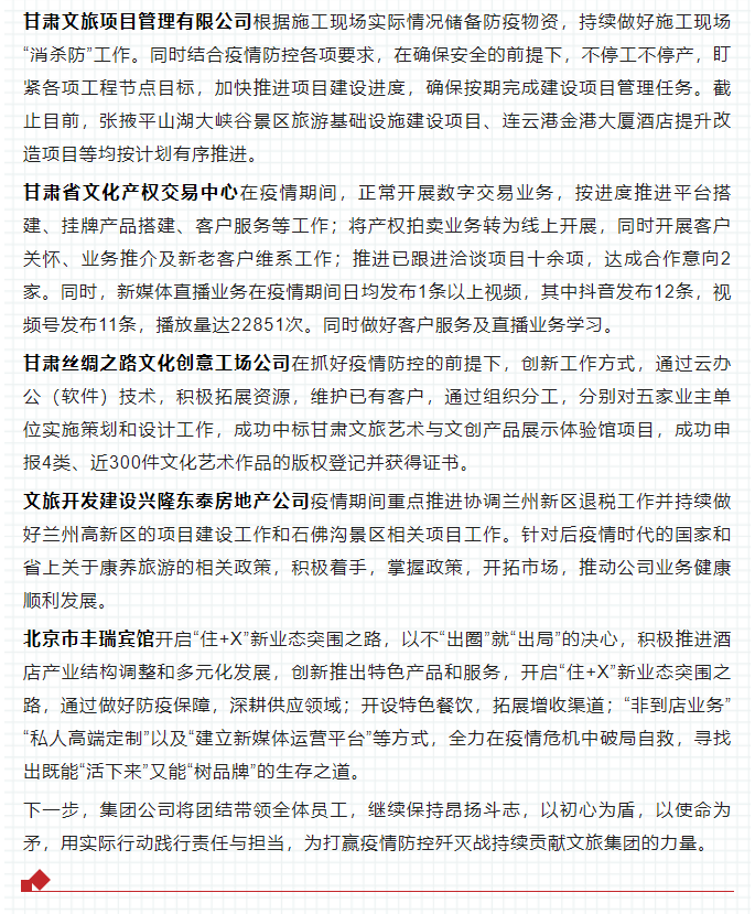 沖鋒在前抗疫情 守土盡責(zé)穩(wěn)經(jīng)營(yíng)——甘肅文旅集團(tuán)抗疫工作紀(jì)實(shí)